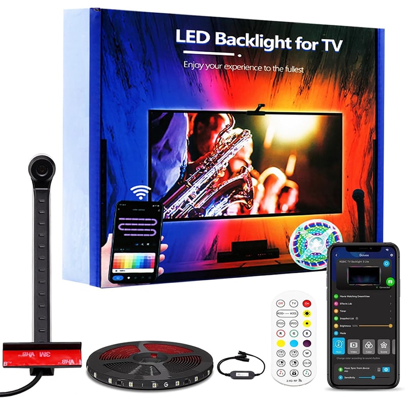ریسه هوشمند RGB مدل TV Backlight دارای 5 متر طول و چسبی پشت ریسه جهت اتصال به مکان مورد نظر میباشد. ریسه نواری ضد آب بوده و می توانید از آن در اماکن باز استفاده کنید. این ریسه ها دارای کنترل هستند که می توانید از راه دور رنگ، کم یا زیاد کردن نور و خاموش و روشن کردن ریسه را کنترل کنید. درواقع این ریسه هوشمند RGB مدل TV Backlight دارای یک کنترل پنل و ریموت است و با استفاده از ریموت می توانید نور، رنگ و افکت این لامپ ها را تغییر دهید. توجه کنید که به دلیل دمای بالای پشت تلویزیون، این کنترل پنل را پشت تلویزیون نصب نکنید. ریسه هوشمند RGB مدل TV Backlight دارای ۳۲ رنگ است که می توانید آن ها را با هم ترکیب کنید و جلوه های مختلف و متنوعی را به محیط خود بدهید. با استفاده از ریموت، شما می توانید روشنایی این لامپ ها را از بین ۶ سطح انتخاب کنید و با توجه به نور محیط و صفحه تلویزیون، آن را کم یا زیاد کنید. تراکم ال ای دی های این ریسه بسیار زیاد است و نور خوبی دارد.