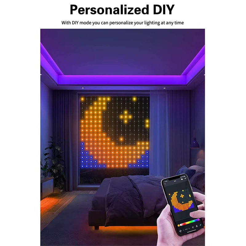 با چراغ پرده ای RGBIC یک نمایش نوری خیره کننده را کشف کنید. با 256 LED، می توانید جلوه های نوری پویا ایجاد و نمایش نور DIY خود را سفارشی کنید.