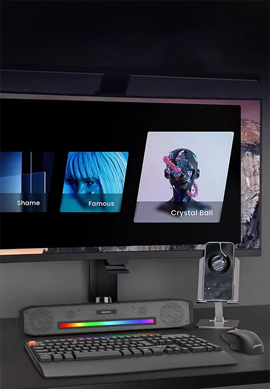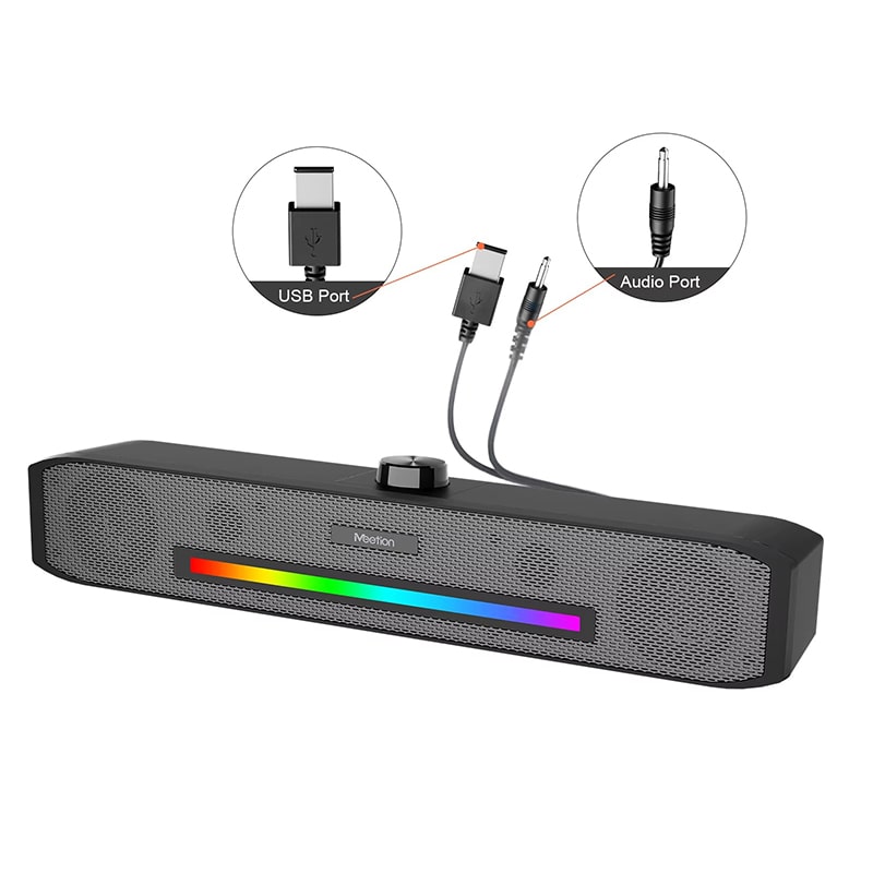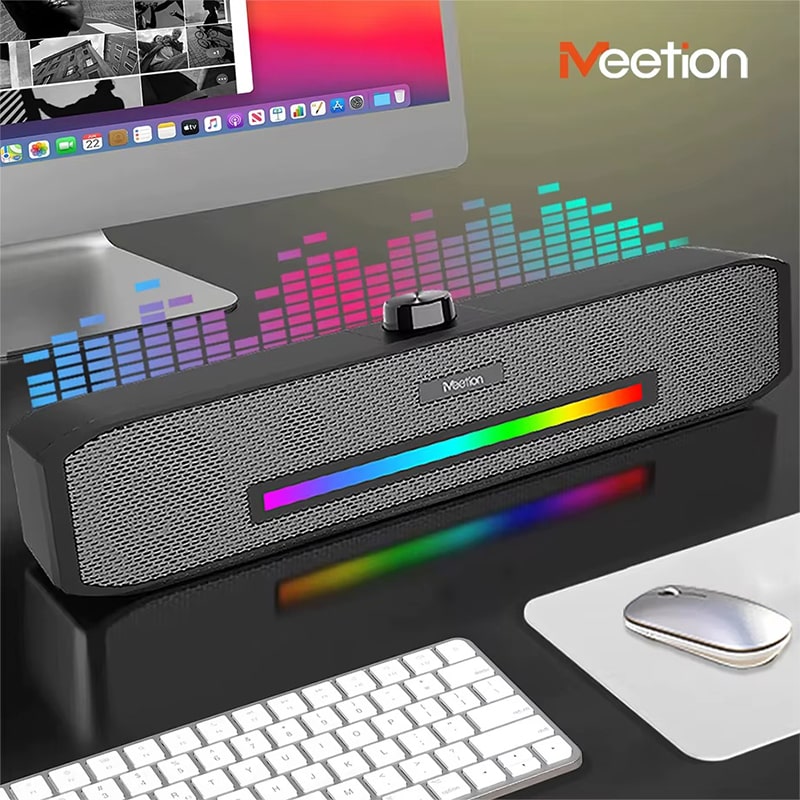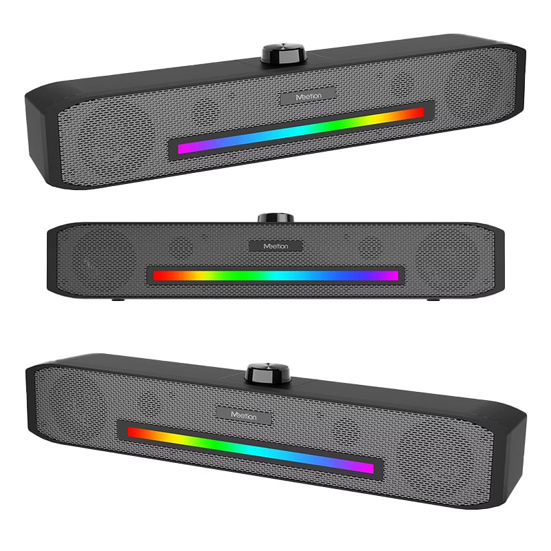 ساندبار گیمینگ میشن مدل Meetion MT-SP1001 یک اسپیکر دسکتاپ جمع و جور و مقرون به صرفه است که برای استفاده در خانه و محل کار ایده آل است. این اسپیکر دارای طراحی ساده و شیک و کیفیت صدای مناسب با طیف وسیعی از ویژگی ها است که آن را به گزینه ای محبوب برای کاربران با بودجه محدود تبدیل می کند. ساندبار گیمینگ میشن مدل Meetion MT-SP1001 مناسب برای استفاده عادی و باتوجه افقی بودن آن، مناسب قرارگیری در زیر مانیتور شما است و جذابیت و صرفه جویی در فضای میز شما ایجاد میکند. Meetion MT-SP1001 دارای طراحی ساده و مینیمالیی است که به راحتی با هر دکوراسیونی تطبیق میکند. این اسپیکر از پلاستیک با کیفیت بالا ساخته شده است. نور رنگی RGB روی اسپیکر بسیار جذاب است و برای کاربرانی که سیستم گیمینگ طراحی می کنند مورد توجه میباشد. Meetion MT-SP1001 صدای با کیفیت مناسب و واضحی ارائه می دهد. این اسپیکر برای گوش دادن به موسیقی، تماشای فیلم و بازی کردن ایده آل است.
