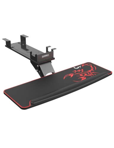 چنانچه لازم باشد شما به مانیتور نزدیکتر باشید، این سینی کشویی میتواند تمام جمع شود و زیر کفه اصلی میز قرار گیرد. این یک ابزار فوق العاده برای افزایش ویژگی ارگونومیک میز گیمینگ و به تبع آن افزایش سطح راحتی و آسودگی کاربر میباشد.
