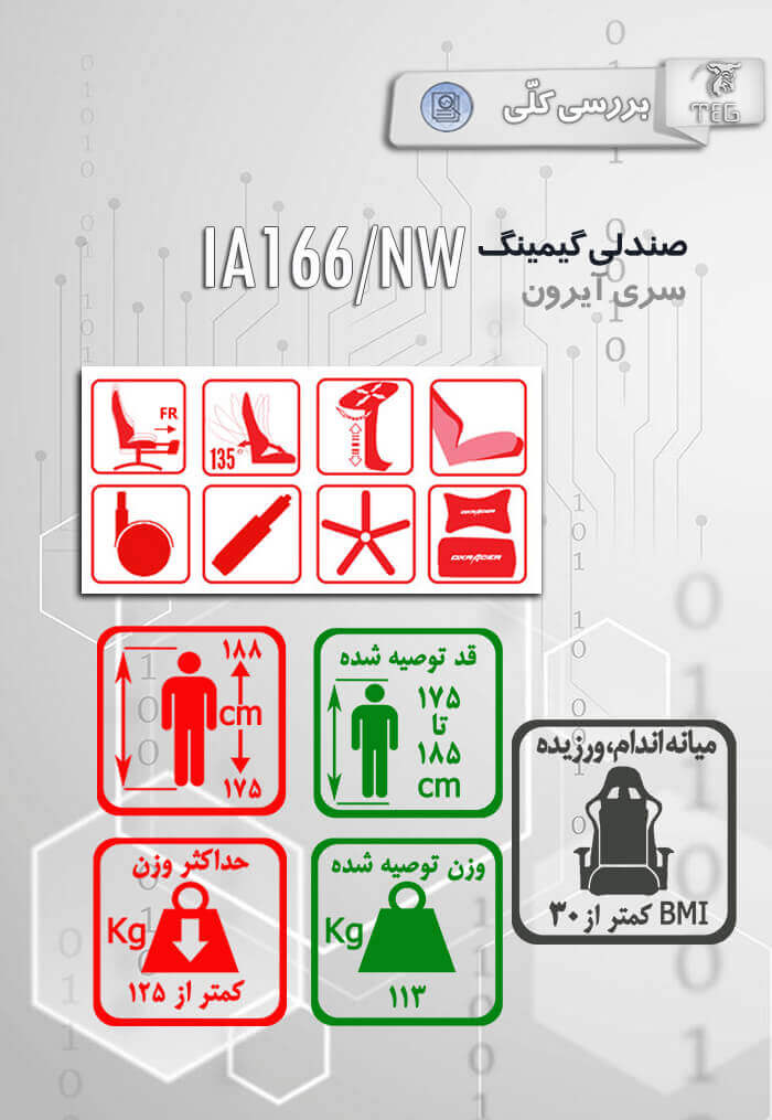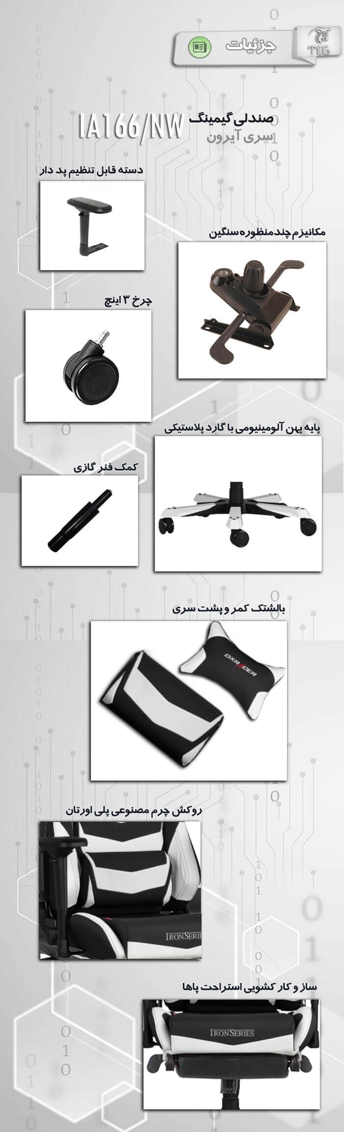 صندلی گیمینگ DXRACER سری آیرون مدل OH IA166 NW