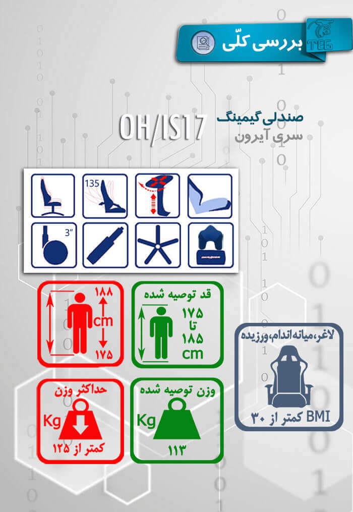 صندلی گیمینگ DXRACER سری آیرون مدل OH IS17