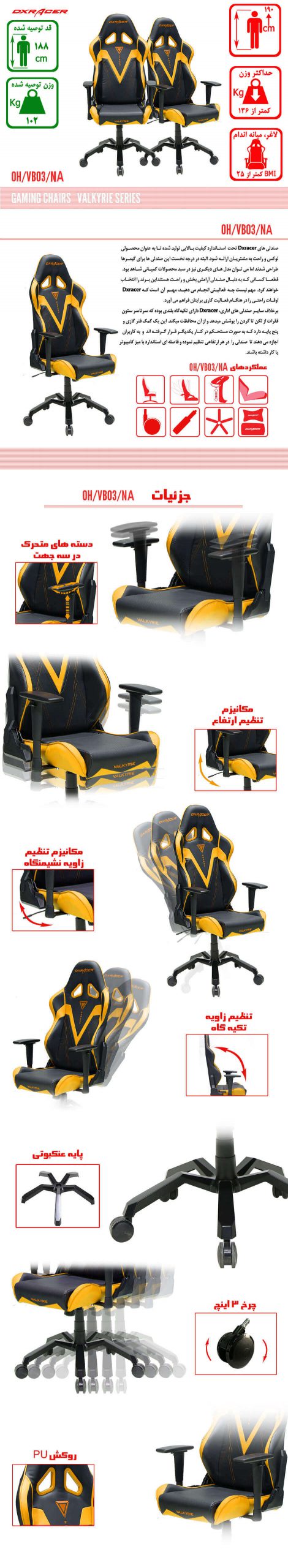 صندلی گیمینگ DXRACER سری والکری مدل OH VB03 NA