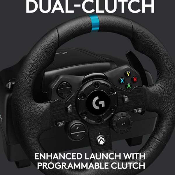 فرمان بازی لاجیتک G923 ویژه کنسول XBOX ONE دارای سیستم کلاچ دوگانهای است که باعث میشود تا هنگام شروع از خط آغاز مسابقه، شتاب بیشتری داشته باشید و از رقبای خود پیشی بگیرید. سیستم کلاچ دوگانه فقط در بعضی بازیها قابل استفاده است.
