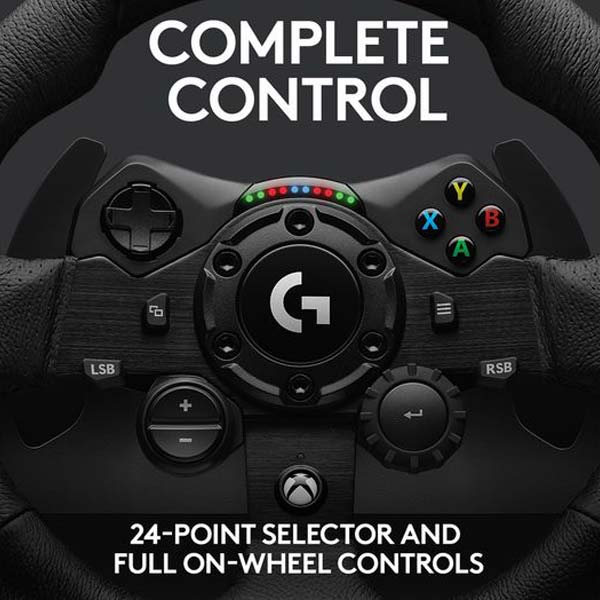 فرمان بازی لاجیتک G923 ویژه کنسول XBOX ONE تمام دکمههای کنسول مورد استفاده شما را روی خود دارد و برای استفاده از آن نیازی به کنترلر مجزا ندارید. شما میتوانید هنگام بازی، به سرعت به تنظیمات بازی دسترسی داشته باشیدو با استفاده از خود فرمان، تنظیمات بازی را تغییر دهید. این فرمان دارای یک دیال ۲۴ نقطهای است که با آن میتوانید اصطکاک، گشتاور، نیروی ترمز و غیره را تغییر دهید. استفاده از این تنظیمات به بازی شما بستگی دارد و همه بازیها از این تنظیمات پشتیبانی نمیکنند.