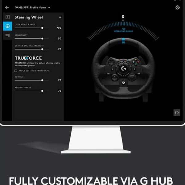 با نصب نرم افزار G Hub و اتصال فرمان G923 به کامپیوتر، میتوانید آن را به دلخواه خود شخصیسازی کنید. حساسیت فرمان، سطح پاسخدهی و تغییر عملکرد دکمهها، تنها تعدادی از کاربریهای نرمافزار G Hub هستند شما با این نرمافزار میتوانید برای هر بازی، پروفایلهای مختلفی از تنظیمات خود بسازید و به سرعت آنها را در بازی فعال کنید.