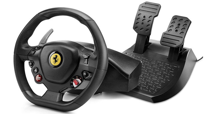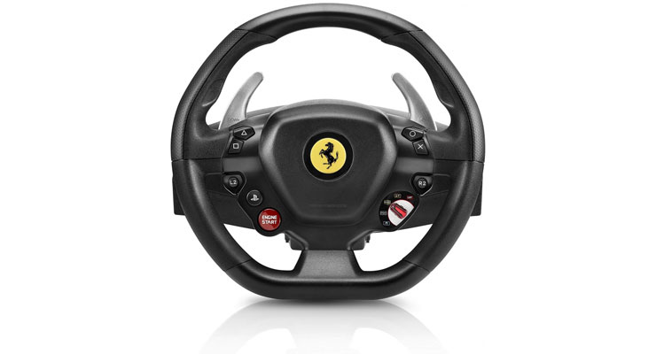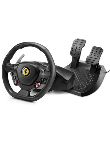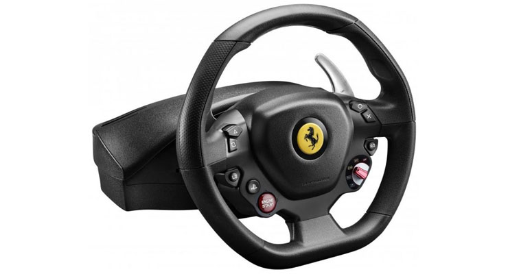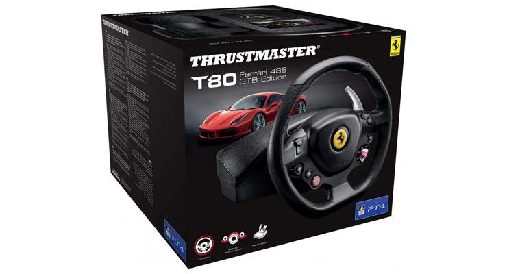فرمان بازی Thrustmaster T80 مدل Ferrari 488 GTB Edition ویژه کنسول PS4 محصولی از کمپانی Thrustmaster با مجوز کمپانی فراری و تحت نظارت کمپانی سونی، به صورت اختصاصی برای پلی استیشن 4 ساخته شده است و مدلی از فرمان خودروی فراری 488 GTB با نسبت 8:10 است. این فرمان که قطر ۲۸ سانتی متری دارد، دارای تمام دکمههای دوال شاک 4، از جمله OPTIONS، SHARE و PS است و میتوانید مانند یک کنترلر معمولی با آن کار کنید. این فرمان با تمام بازیهای مسابقهای پلی استیشن 4 و کامپیوترهای شخصی سازگار است.