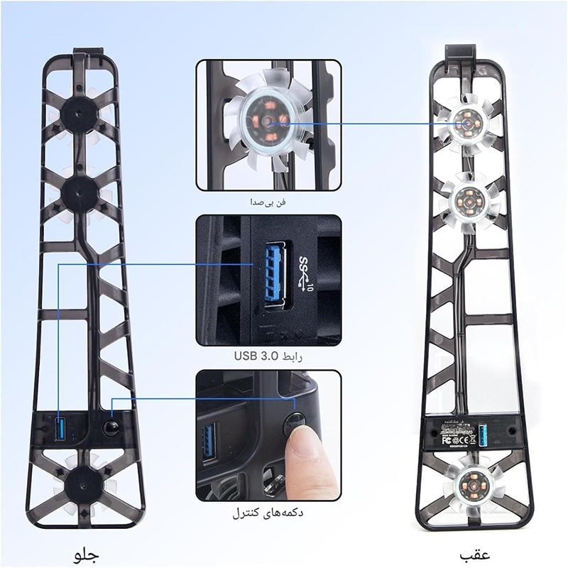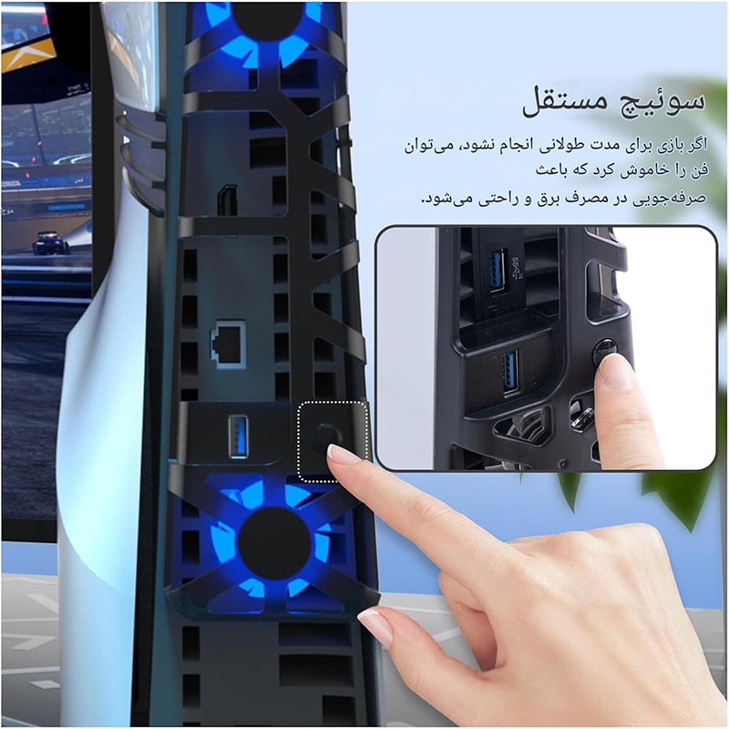 پورت USB برای راحتی بیشتر: پورت خروجی USB داخلی به شما امکان میدهد لوازم جانبی اضافی مانند دستهها یا کابلهای شارژ را بدون کاهش عملکرد متصل کنید، که این فن خنککننده پلیاستیشن 5پرو را به یک وسیله کاربردی برای تنظیمات بازی شما تبدیل میکند.