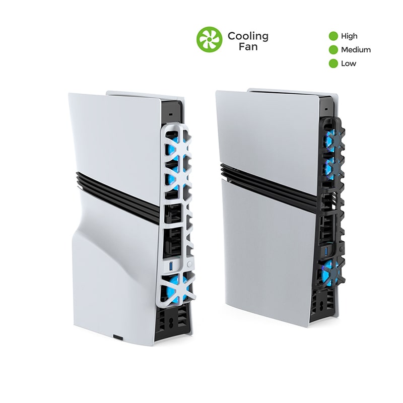 حالتهای سرعت قابل تنظیم برای خنککنندگی سفارشی: با چهار حالت – کم، متوسط، زیاد و خاموش – میتوانید به راحتی سرعت فن را متناسب با نیازهای خنککنندگی کنسول خود تنظیم کنید. چه در حال انجام بازیهای سنگین باشید و چه در حال پخش ویدیو، این فن PS5 Pro عملکرد بهینه را تضمین میکند.