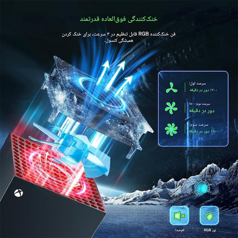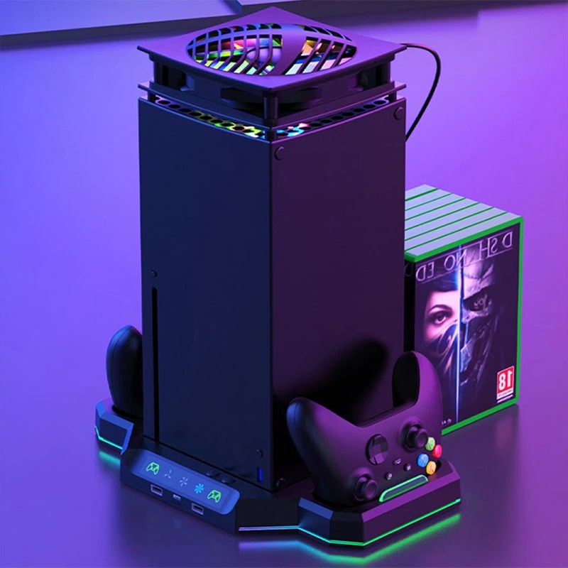 فن و پایه چند منظوره X-Series X مدل IPLAY HBX-608 RGB یک فن خنککننده-پایه شارژ چندمنظوره است که برای کنسول ایکسباکس سریز ایکس طراحی شده است و شامل پایه شارژ-نگهدارنده و فن خنککننده RGB مورد استفاده در بالای کنسول است. خنککننده، شارژ، نگهداری، همه اینها در یک محصول!