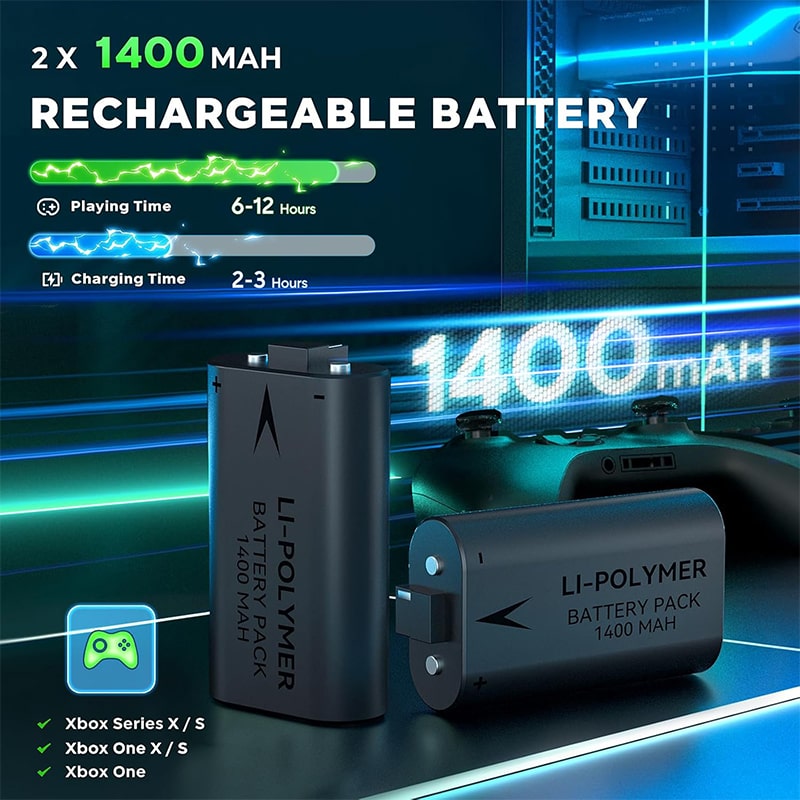 باطری: 2 باطری 1400 میلی آمپر برای دسته ایکس باکس