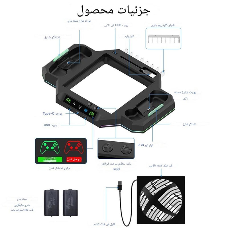 ۱. این محصول برای خنک کردن کنسولهای ایکسباکس سری ایکس و شارژ دستههای اصلی مناسب است.