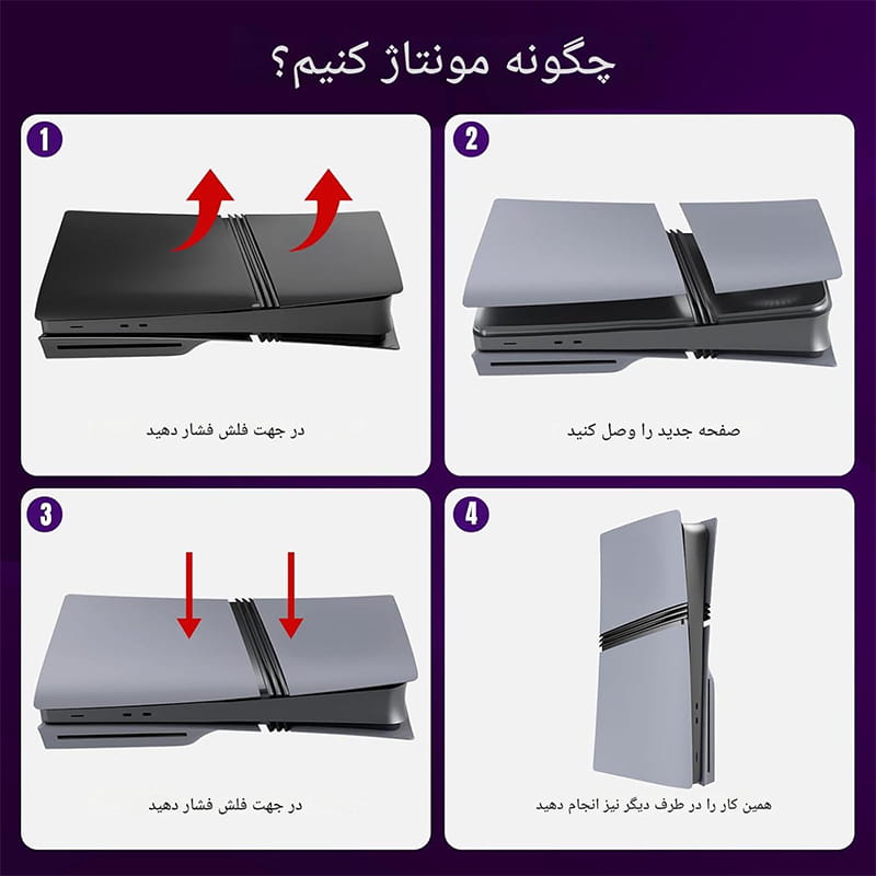 هنگام نصب فیس پلیت ، مراقب باشید که به پورتها و دکمههای کنسول آسیب نرسد.
