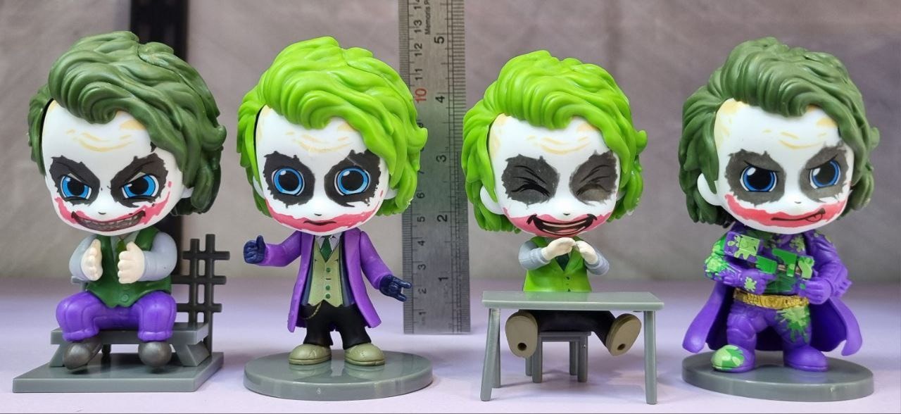 چهار فیگور متفاوت با طراحی دقیق و جزئیات بالا: وجود 4 نسخه متفاوت از جوکر، تنوع و جذابیت بیشتری به این پک می بخشد. تمامی ویژگی های نمادین جوکر، از لباس ها تا حالات چهره، با دقت بالایی طراحی شده اند.