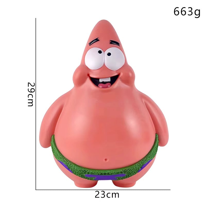 فیگور جذاب پاتریک با ارتفاع حدود 29 سانتیمتر است. این فیگور دارای جزئیات دقیق، رنگهای روشن، غیر سمی و قابل شستشو است. از آنجا که هم بزرگسالان و هم کودکان این شخصیتهای کارتونی بامزه را دوست دارند، هم میتوانید از آن در دکوراسیون خود استفاده کنید و هم میتوانید به عنوان اسباببازی در اختیار کودکان قرار دهید.