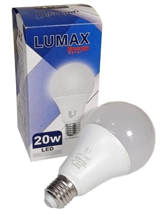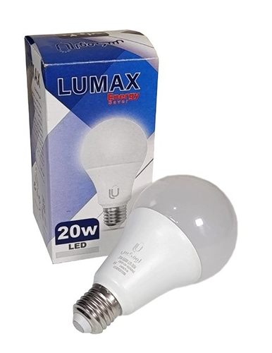 مقدار روشنایی لامپ LED لومکس 20 وات مدل حبابی معادل است با200 وات لامپ رشته ایی