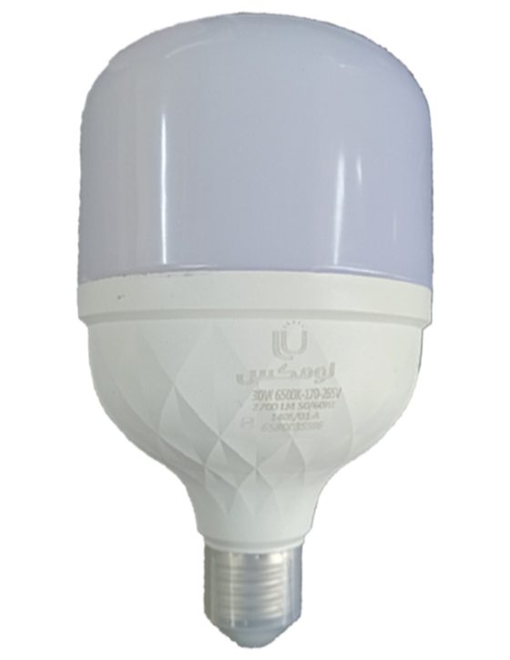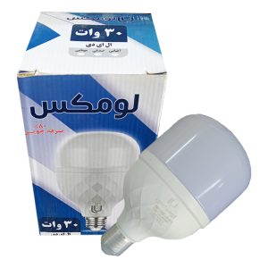 مقدار روشنایی لامپ LED لومکس 30 وات مدل استوانه ایی معادل است با300 وات لامپ رشته ایی