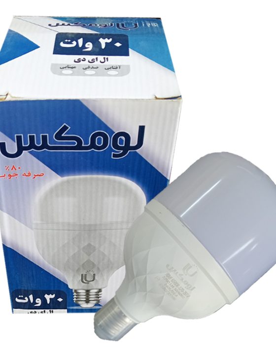 مصرف انرژی لامپ LED لومکس 30 وات مدل استوانه ایی معادل است با20 درصد لامپ رشته ایی