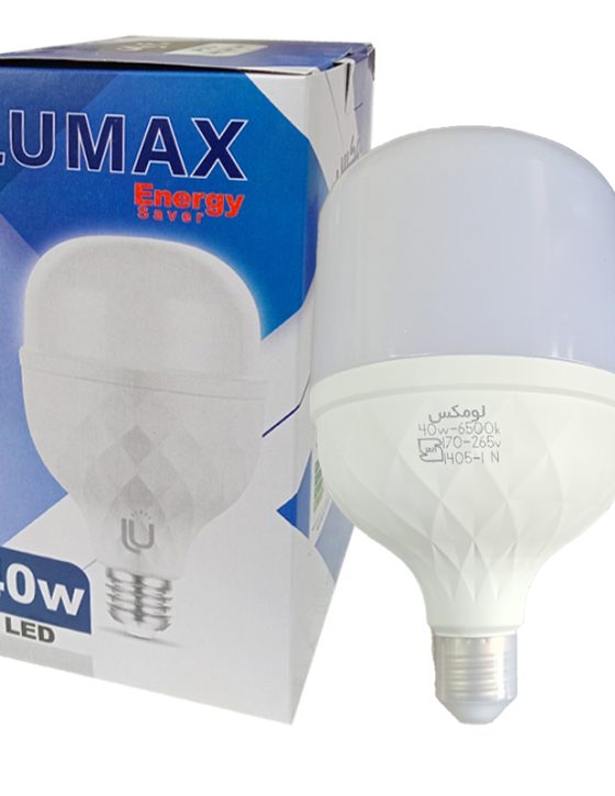 مقدار روشنایی لامپ LED لومکس 40 وات مدل استوانه ایی معادل است با270 وات لامپ رشته ایی
