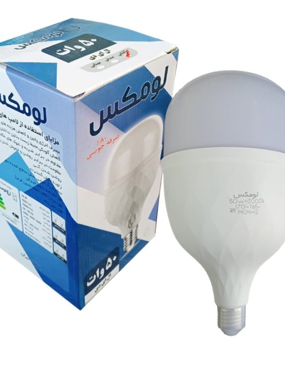 مصرف انرژی لامپ LED لومکس 50 وات مدل استوانه ایی معادل است با20 درصد لامپ رشته ایی