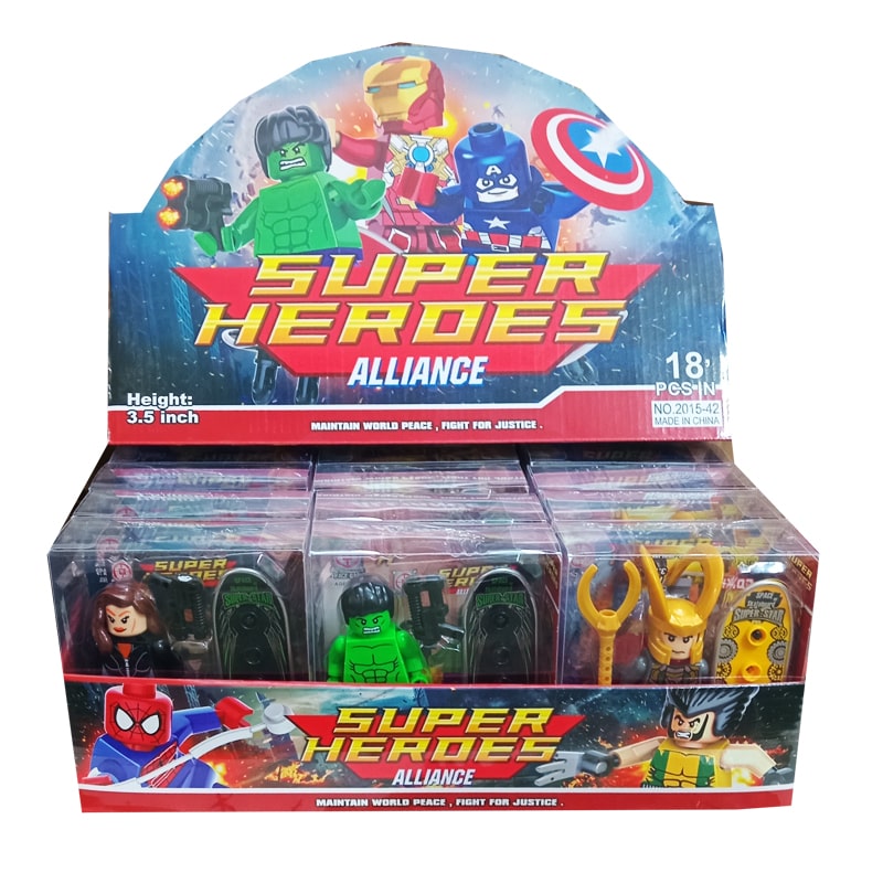 لگو ابرقهرمانان مدل Super Hero Alliance کد 2015/42 ست 9 عددی شامل شخصیت های : هالک، کاپیتان آمریکا، ایرون من، اسپایدر من، تور، ولورین، بیوه سیاه، لوکی و کلینت بارتون/هاکای میباشد. این پک دوست داشتنی به دلیل طراحی زیبا و رنگ آمیزی جذابی که دارد در بین کودکان مخصوصا پسربچه ها و کسانی که به داستان ها و شخصیت های ابرقهرمانی علاقه دارند بسیار محبوب میباشد. این اسباب بازی برای سنین بالای 3 سال مناسب می باشد بوده. از جنس پلاستیک فشرده فاقد مواد حساسیت زا ساخته شده است .میتوانید به راحتی آن را در اختیار فرزند دلبندتان قرار دهید.