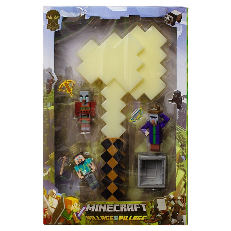 لگو فیگورهای ماینکرافت با تبر Village Pillage شامل قطعاتی برای ایجاد عناصر مختلف بازی، مانند شخصیت ها، سلاح ها، یک تبر بزرگ و موارد دیگر است که با دنیای ماینکرافت مرتبط است. تبر ماینکرافت یکی از سلاحهای پر طرفدار بازی ماینکرافت است که اکنون میتوانید آن را در دستان خود داشته باشید. با این تبر و در کنارش چند مینی فیگور از شخصیتهای مختلف ماینکرافت به همراه سلاحهایشان است که کودکان می توانند محیط ها، شخصیت ها و اشیاء مختلف از دنیای ماینکرافت را بازی کرده و خلاقیت و تخیل خود را در ساخت و ساز دنیای خود به کار بگیرند.
