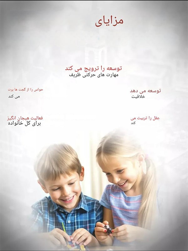 ۱. سهولت مونتاژ: قطعات سازنده به راحتی به هم متصل می شوند و مونتاژ را برای همه سنین قابل دسترس می کنند. دستورالعمل، هر مرحله را تجسم می کند و درک فرآیند را تضمین می کند.