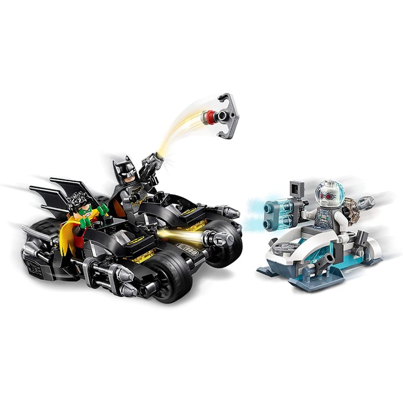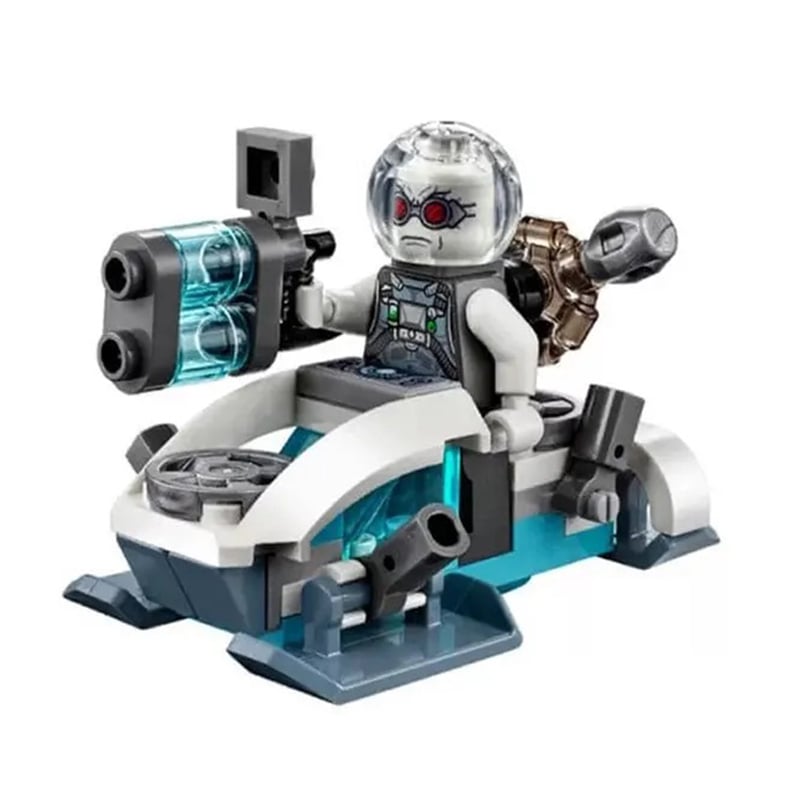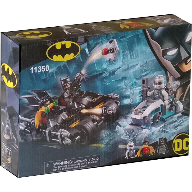 وضعیت اضطراری! آقای فریز دارد گاتهام سیتی را به یخ تبدیل می کند! با لگو نبرد بتمن و رابین با مستر فریز کد 11350 سوار بر موتورسیکلت این مجموعه فوق العاده شده، به کمک او بروید. با استفاده از تفنگ یخ زن، اسکوتر برفی آقای فریز را هدف قرار دهید و از اسلحه یخ زن او دوری کنید. سپس موتورسیکلت بتمن را به دو قسمت تقسیم کنید و سر راه این ابرشرور کمین کنید. با شمشیر رابین حمله کنید و با استفاده از بت رنگ و قلاب مخصوص بتمن، آقای فریز را هدف قرار دهید. فقط شما می توانید این آدم بد را به آتش بکشید و گاتهام سیتی را نجات دهید.