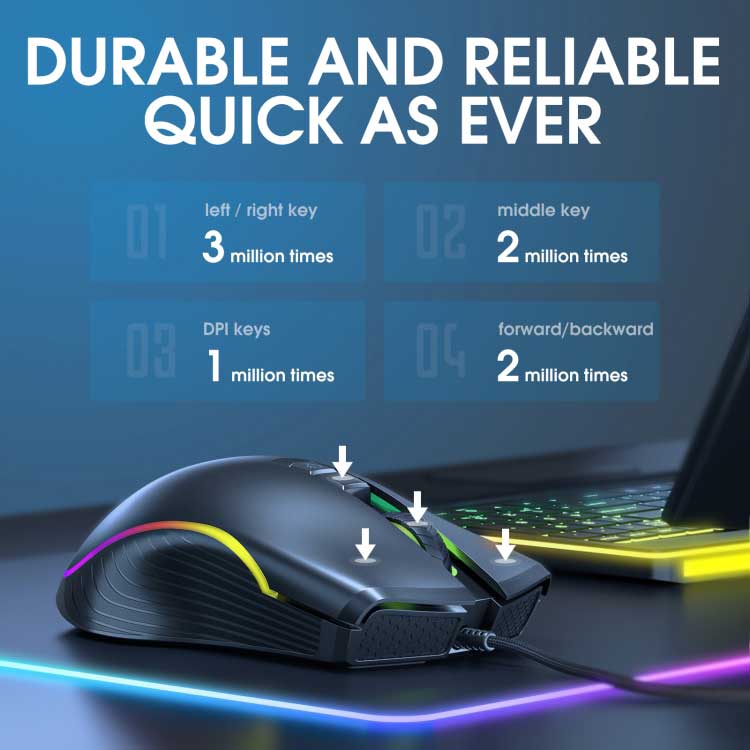 DPI 6 سرعته: 1200 (زرد)، 1600 (آبی)، 2400 (صورتی)، 3200 (سبز)، 4800 (قرمز)، 7200 (فیروزهای)