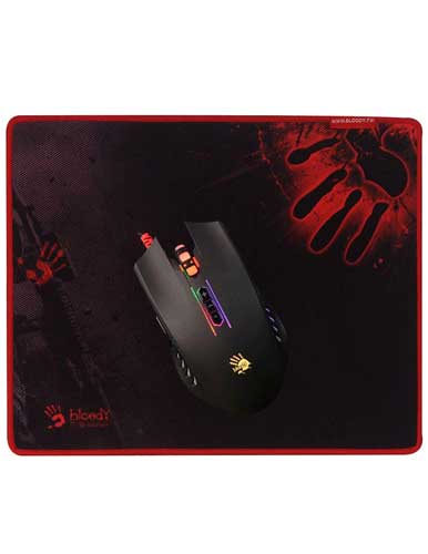 در حسگر ماوس گیمینگ ای فورتک مدل q8181 s مانند دیگر موس های این شرکت تکنولوژی V-Track به کار رفته است که باعث می شود حتی بدون پد نیز بتوانید از آن استفاده کنید. در بخش زیرین این موس برای کاهش استحکاک با پد یک لایه فلزی کوچک تعبیه شده که در هنگام بازی کردن سرعت عمل شما را بالا خواهد برد. برای استفاده راحت تر و گرفتن سرعت و دقت بیشتر از موس شما باید از یک پد موس خوب و با کیفیت استفاده کنید. شرکت بلادی این موضوع را فراموش نکرده است و در پکیج این موس یک پد موس گیمینگ با طراحی زیبا و کیفیت قرار داده است. این پد موس به دلیل الیاف استفاده شده در آن عمر و ماندگاری بیشتری دارد. سطح آن برای سرعت عمل بیشتر بهینه شده است تا شما در بازی ها عملکرد بهتری داشته باشید. به دلیل وزن کم و راحتی جمع شدن شما می توانید این پد موس را به راحتی با خود جا بجا کنید.