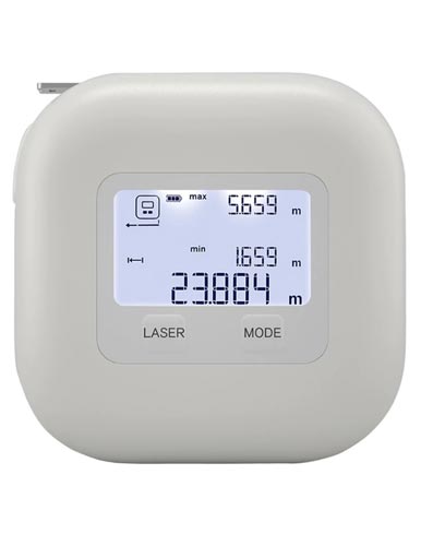 فاصله پرتو لیزر فاصله یاب می تواند تا 25 متر باشد، در حالی که طول خود نوار 3 متر است.