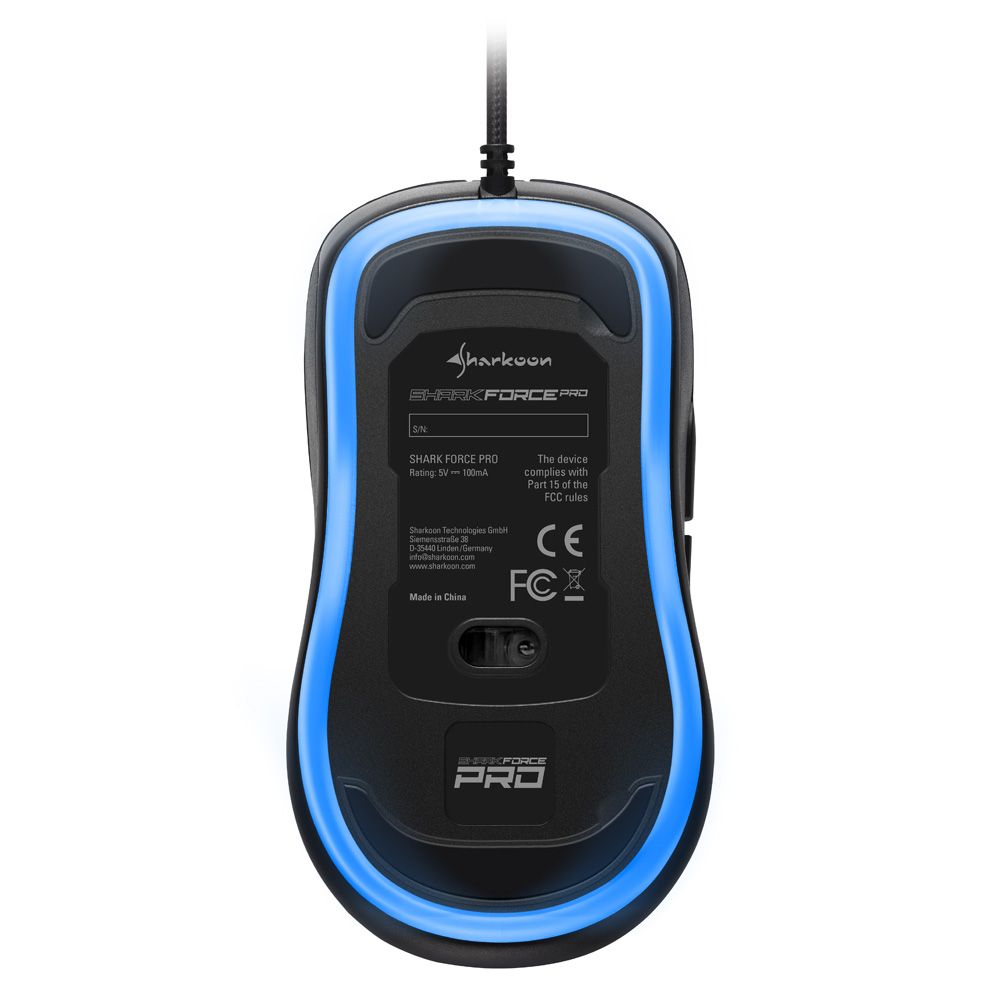 تعبیه سیستم نورپردازی در بخش زیرین ماوسهای SHARK FORCE PRO میزان زیبایی و جلوه های بصری محصولات این خانواده را به شکل قابل توجهی افزایش داده است. نورپردازی این محصولات به صورت تکرنگ و متناسب با رنگ اصلی ماوس شامل نارنجی، آبی (برای نمونه مشکی)، سبز، قرمز یا سفید خواهد بود.