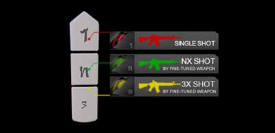 سه حالت تیراندازی مختلف برای کلید سمت چپ : امکان تغییر لحظه ای و افزایش قابلیتهای تیراندازی در چهار وضعیت مختلف با استفاده از کلیدهای ۱، N و ۳ با موس گیمینگ A4TECH Bloody V5M Gaming Mouse