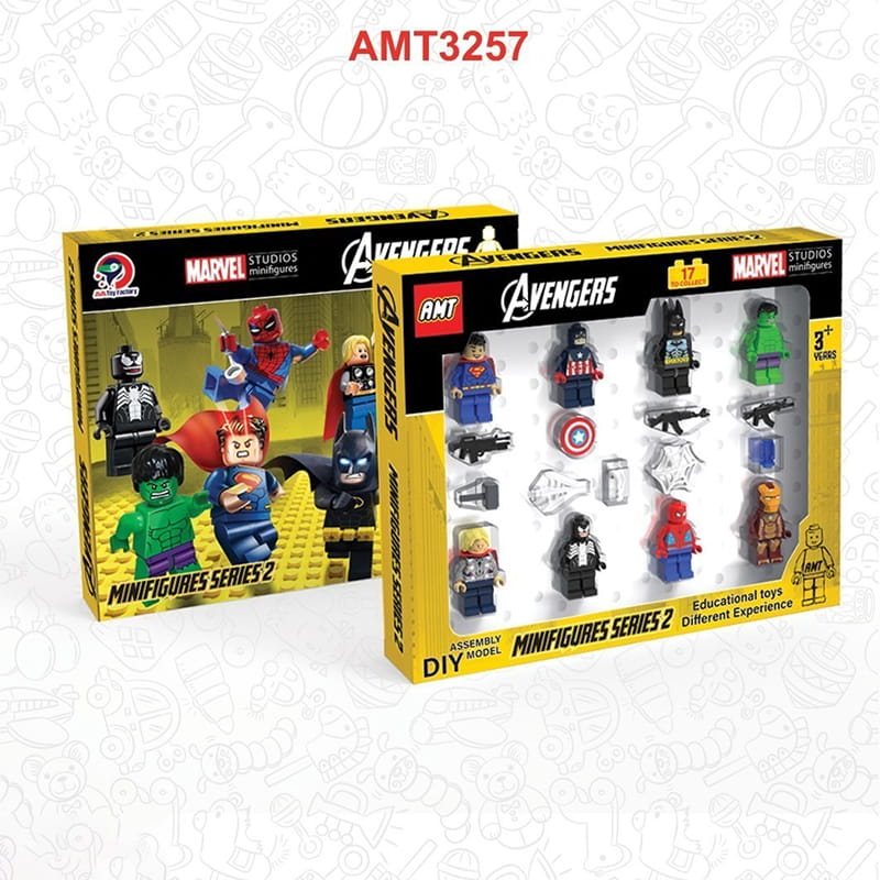 مینی فیگور 8 عددی Avengers مدل AMT 3257 شامل ترکیبی از شخصیتهای محبوب دنیای Marvel و DC است و برای کسانی که عاشق جمعآوری فیگورهای کوچک و رنگارنگ هستند، گزینهای عالی به شمار میرود.