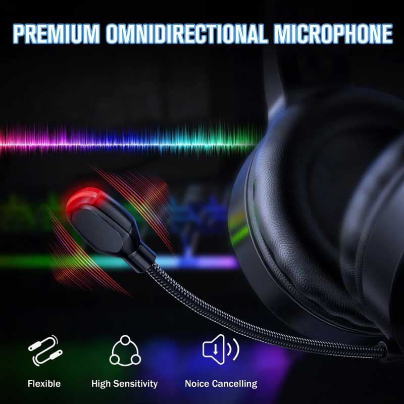 هدبند پرکننده درایور پویا با وفاداری بالا. دقت صوتی و تصویری میکروفون کاهش نویز با کنترل سیم چند منظوره. بازی نورپردازی رنگارنگ RGP برای پوشیدن بیشتر خنک برای ایجاد یک محیط بازی خنک و سایر تجهیزات رنگارنگ برای بهبود تجربه بازی