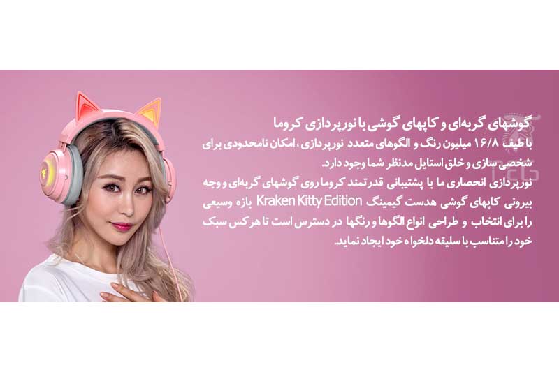 هدست گیمینگ ریزر RAZER مدل KRAKEN Kitty Edition Quartz