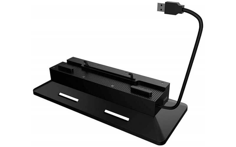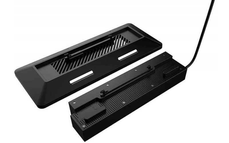با پایه نگه‌دارنده و خنک‌کننده مخصوص ایکس باکس وان ایکس، شما می‌توانید کنسول ایکس باکس وان ایکس خود را به صورت عمودی قرار دهید تا علاوه بر اشغال فضای کمتر، به دکور خود زیبایی ببخشید. همچنین، این استند با یک کابل USB به کنسول شما یا منبع برق مجزا وصل می‌شود، دارای دکمه برای خاموش و روشن کردن است و با فن‌های خنک‌کننده، دمای کنسول را کاهش می‌دهد. فن این پایه قابل جداسازی است و می‌توانید از آن فقط به عنوان پایه عمودی استفاده کنید. توجه کنید که این پایه فقط و فقط با ایکس باکس وان ایکس سازگار است.