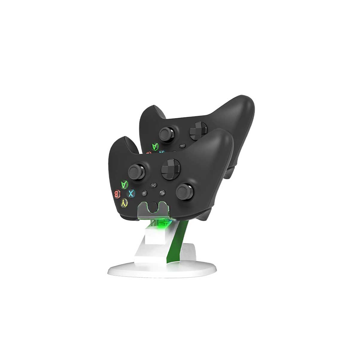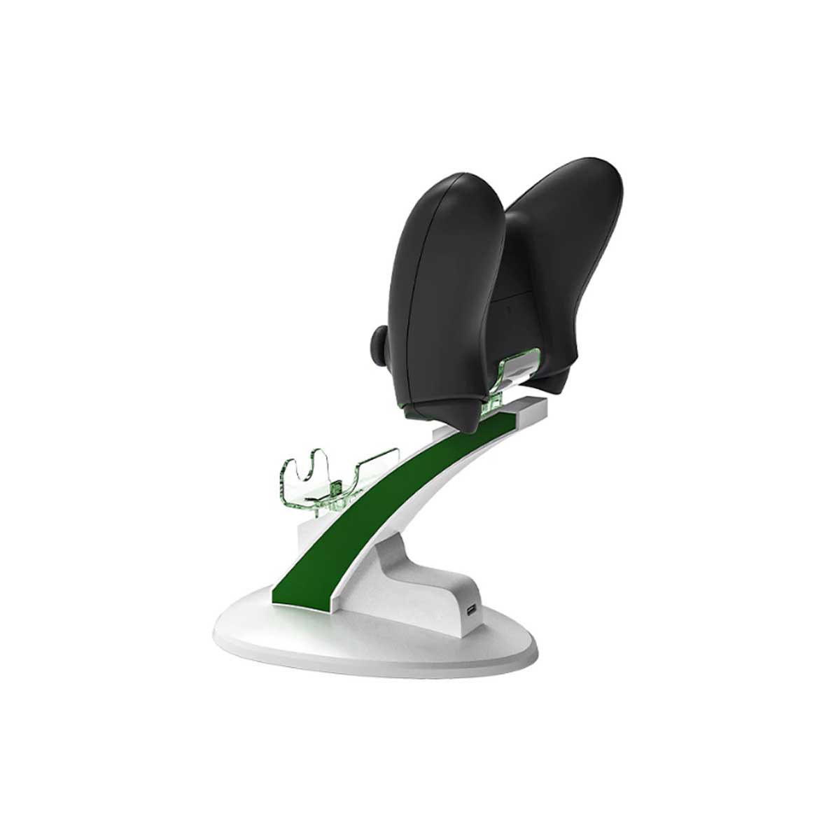 پایه شارژر دسته ایکس باکس از طریق اتصال کابل تایپ سی به کنسول شارژ مورد نیاز خود را دریافت می کنند. این پایه از چراغ نشانگر ال ای دی سبز رنگی بهره می برد که در حین شارژ شدن دسته روشن و هنگام فول شارژ شدن باتری ها خاموش می شود.