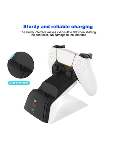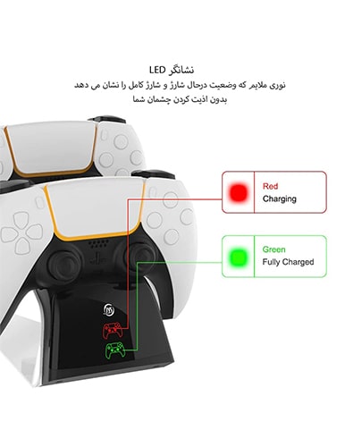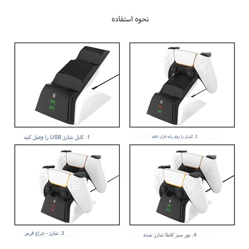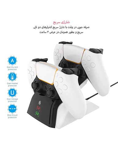 قابلیت ها: شارژ دو کنترلر DualSense به صورت همزمان، دارای قابلیت شارژ سریع، نوار LED برای نمایش وضعیت شارژ