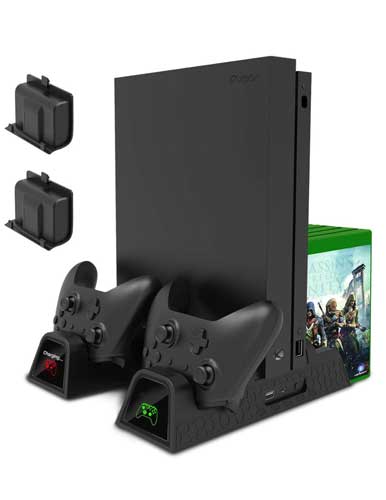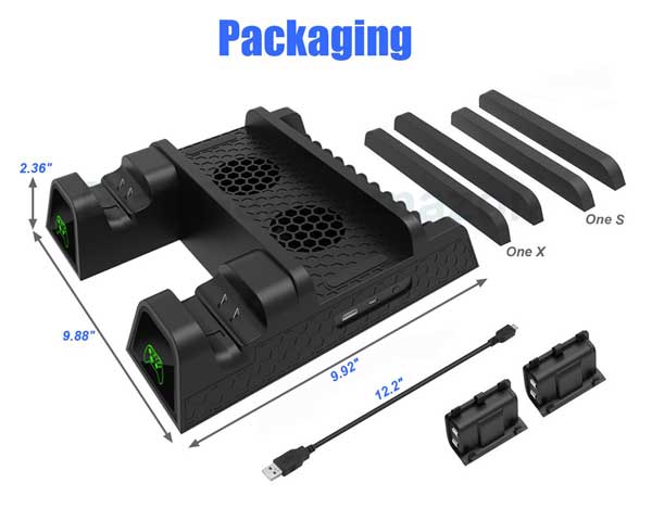 [شارژ و پخش] پایه شارژ فن دار مولتی مدل DOBE TYX-1840 آسان برای راه اندازی، پلاگین و بازی به سادگی Xbox One را به پایه قرار دهید؛ با 2 جفت EVA واشر / آداپتور برای نگه داشتن ایکس باکس یکی S (نسخه لمسی) و یک X صاف؛ دو ایستگاه docking شارژ آماده برای استاندارد یو اس بی ایکس باکس یک و کنترل کننده پروانه ی بی سیم EC – Elite است؛ دو پنجره LED منحصر به فرد وضعیت شارژ را در جزئیات رنگی نشان می دهد