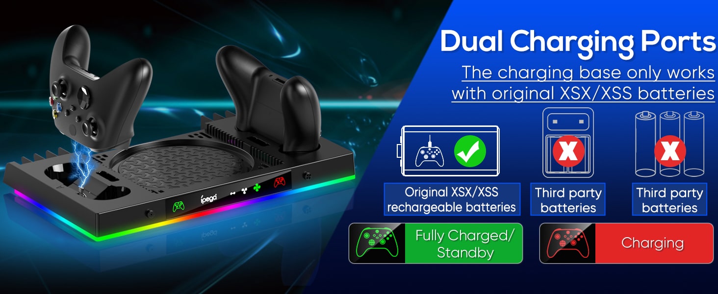 اولین موردی که در این محصول جلب توجه میکند، قابلیت شارژ مجدد دستههای کنسول میباشد. با استفاده از این قابلیت شما میتوانید به صورت همزمان تا دو دسته را شارژ کنید و دیگر نگران هزینههای اضافی ناشی از خرید باتریهای یکبار مصرف نباشید. به این طریق هم در مصرف هزینههای شما صرفهجویی میشود و هم وقفه آزاردهندهای در روند بازی شما پدیدار نمیشود .