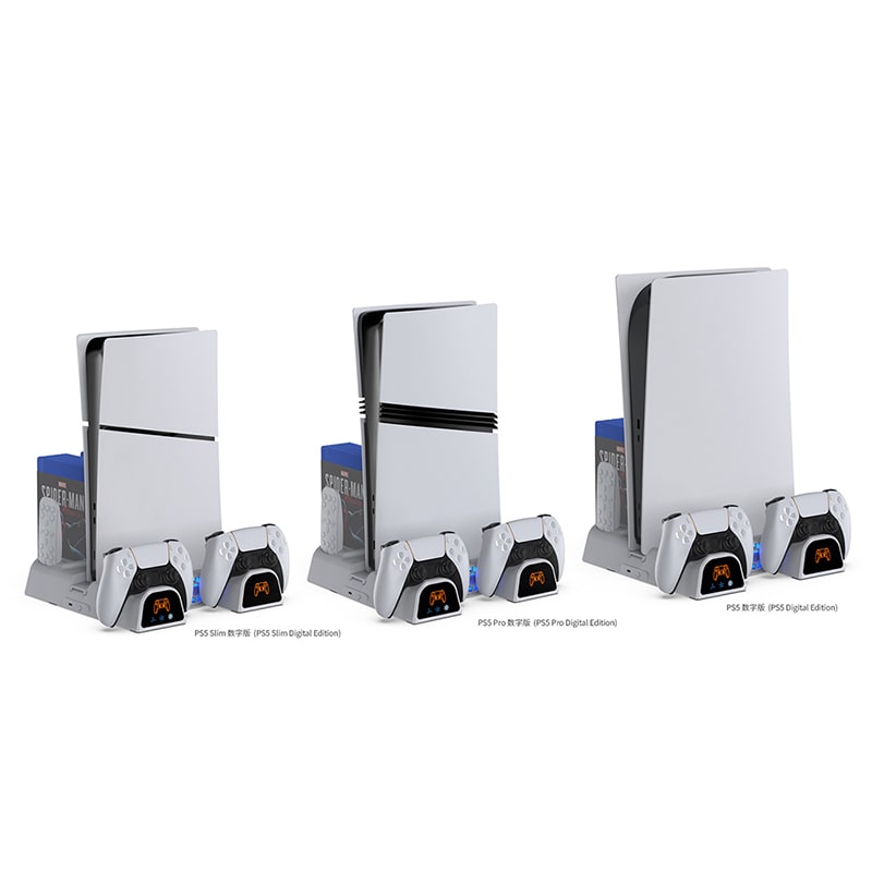 پایه چند منظوره PS5 Pro دابی مدل TP5-3532B مخصوص پلی استیشن 5 و پلی استیشن 5 اسلیم و پرو، شما را از هر وسیله جانبی دیگری بینیاز میکند. این محصول یک براکت دفع حرارت چند منظوره هوشمند کاملا جدید است که میتواند کنسولهای PS5 Slim/PS5/ PS5 Pro را خنک کند و دو دسته P-5 را به طور همزمان شارژ کند. این محصول 11 جایگاه برای سی دیی بازی و یک کنترل از راه دور کنسول را در خود جای میدهد. این پایه دارای یک قاب مخصوص برای پلی استیشن 5 اسلیم است و با هر مدل پلی استیشن 5 کاملا سازگاری دارد. پایه چند منظوره PS5 Pro دابی مدل TP5-3532B دارای دو کانکتور USB-C مخصوص دوال سنس برای شارژ همزمان دو گیم پد است و همچنین دارای 11 فضای مخصوص دیسک بازیها است. این پایه با یک کابل USB-C به پلی استیشن یا هر منبع برقی متصل میشود و علاوه بر یک پورت USB دارای یک کابل USB دوگانه برای اتصال لوازم جانبی بیشتر به کنسول است.این محصول همچنین دارای دو فن است که با خنک کردن محیط اطراف کنسول، دمای مناسبی را برای استفاده از پلی استیشن 5 فراهم میکنند.