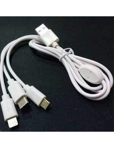 کابل تبدیل USB به لایتنینگ و USB C و microUSB از سری محصولات میباشد که قابلیت شارژ تمام اسمارت فون ها و یا تبلت ها را با پورت های لایتنینگ ، USB-C و MicroUSB را دارد . حداکثر سرعت انتقال شارژ این کابل 2.4 آمپر است که در محصولات کابل های سه کاره سرعت بسیار خوبی به شمار میرود.این کابل قابلیت شارژ همزمان سه دستگاه را دارد.از این کابل فقط جهت شارژ می توان بهره گرفت.