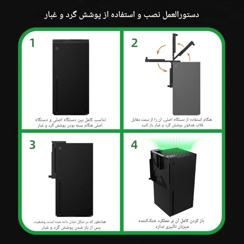 دفع گرما و گرد و غبار: پوشش فیلتر گرد و غبار کنسول بازی، دفع گرما و محافظت عالی در برابر گرد و غبار را برای کنسول XboxSeriesX شما فراهم میکند.