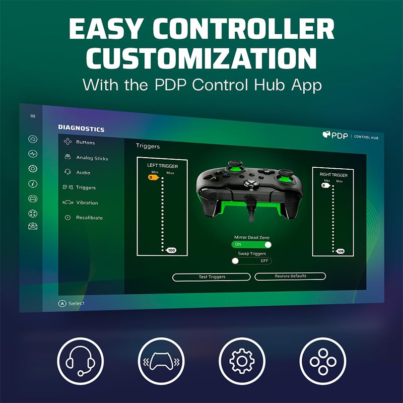 کنترل های قابل تنظیم: از برنامه رایگان PDP Control Hub برای تغییر تنظیمات دکمه ها، پیکربندی مجدد ماشه ها و تنظیم مناطق کور برای شخصی سازی گیم پلی خود استفاده کنید.