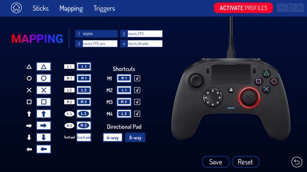 The REVOLUTION Pro Controller 2 also gives you the possibility to choose the way you want to play: switch between the classic 8-way or the 4-way directional style that you can configure with the PC/Mac companion app .