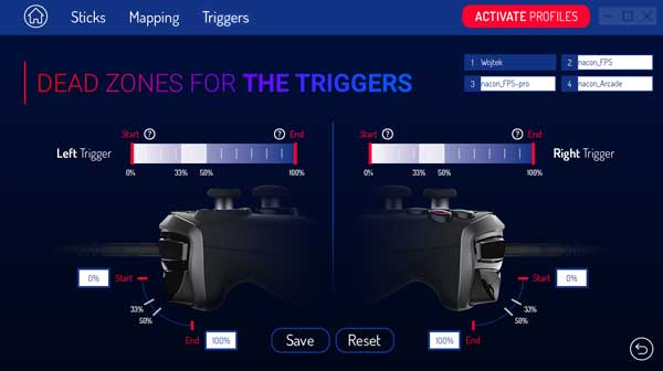You can also adjust the dead zones of each trigger via the PC/MAC companion app .