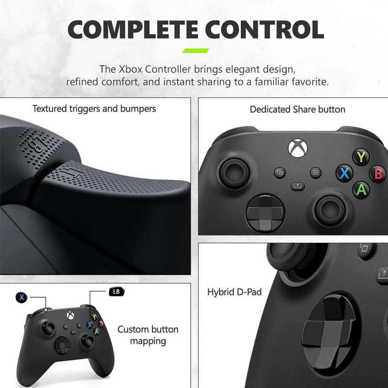 کنترلر کنسول ایکس باکس سری اس مدل XBOX Series S 1TB نیز نسبت به کنترلر ایکس باکس وان تفاوت خاصی نداشته است و حتی میتوانید از این کنترلر جدید در ایکس باکس وان نیز استفاده کنید. از نظر ظاهری تفاوتی بین دو کنترلر مشاهده نمیشود و شاسی هر دو کنترلر یکسان است. اما کنترلر سری جدید ایکس باکس، بهبودهایی داشته است. این کنترلر ارگونومی بهتری دارد و در دست راحتتر است.