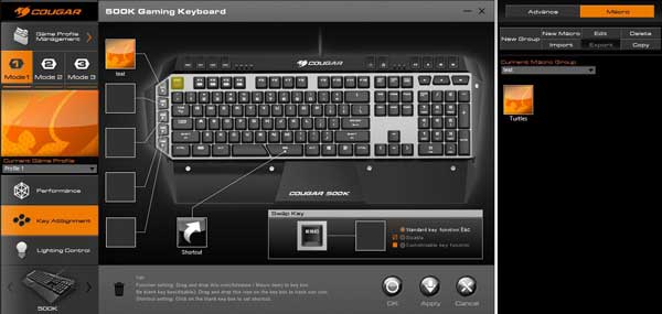 Cougar 500K is a membrane keyboard with suspended keys design and unique key switch brings mechanical keystroke feeling. 6 programmable keys, multi-media and Windows lock keys let you always fight on the optimal status in the game world.