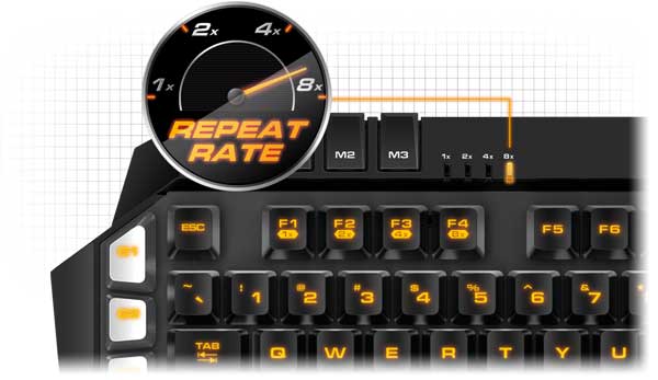 این حالت به شما اجازه میدهد تا با فشار دادن هر کلید و نگه داشتن آن، دستور مربوط به آن کلید را در تعداد مشخصی (تا 8بار) ضرب کرده و عمل مورد نظرتان را سریعتر انجام دهید. این قابلیت در هنگام نیاز به تکرار سریع یک عمل مشخص، بسیار مفید است.